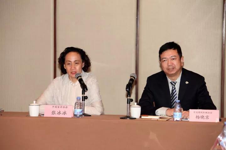 中国家具协会秘书长张冰冰、中国缝制机械协会副会长杨晓京共同主持了这次对接会。山东省家具协会、河北省家具协会、北京市家具协会、天津市家具协会等多个行业协会主要领导都出席了会议,并饶有兴趣地观摩这两组上下游行业企业之间的对接交流。