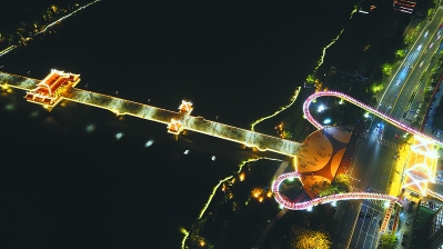 从空中看,漳州飘带天桥和南山廊桥就像一把大吉他。