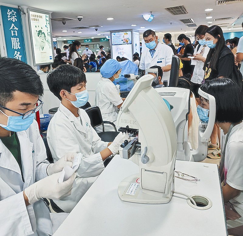 暑期已至,学生视力问题不容忽视。很多家长担心出笼的“神兽”会被手机、游戏“绑架”,加剧视力问题,加深眼镜度数,暑期跑一趟眼科医院成为必选项。与此同时,宣称具有防控近视功能的控制镜在各大医院、门店、眼镜城格外火爆。