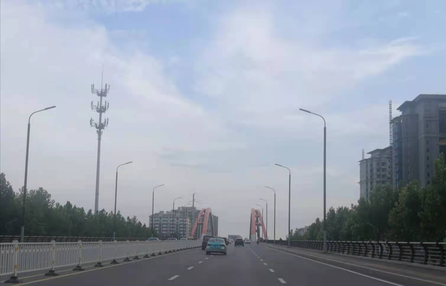 淄博西五路应用山东“智奥”薄膜组件与灯杆一体化光伏路灯日景 安岚坡摄于2021年7月