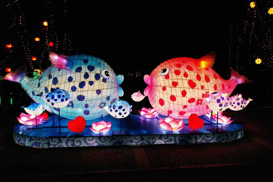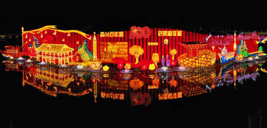 本次灯会将盘锦的湿地文化、自然景观、人文风貌等融入其中。66组大型灯组凸显“高大新奇美”的彩灯艺术特色。10万盏花灯星罗棋布,营造45万平米绚丽场景。《醉美辽河湾》《鼓舞中华》《辉煌百年》等巨型彩灯给人带来视觉震撼。另外,自贡三绝的瓷器灯、水晶灯也绚丽呈现。《醉美辽河湾》是本届灯会体量最大的一组水上灯组,占地6000平米水上灯景,打造大型沉浸式灯群,以灯光、真人演艺、雾森、呐喊泉等,勾勒出诗意曼妙的三生三世十里桃花梦幻河湾风景。白天与夜晚形成不同的景观效果,配合灯光、雾森、真人演绎、声音等营造浪漫温馨的体验感,打造创意十足的“网红打卡地”。为方便观赏,灯会举办方专门为游客修建了300米长的水中栈桥,游客可以近距离欣赏与水中倒影遥相呼应的美景。