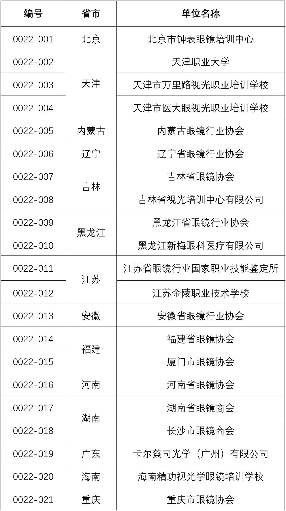 轻工(眼镜)行业职业技能等级评价基地名单
