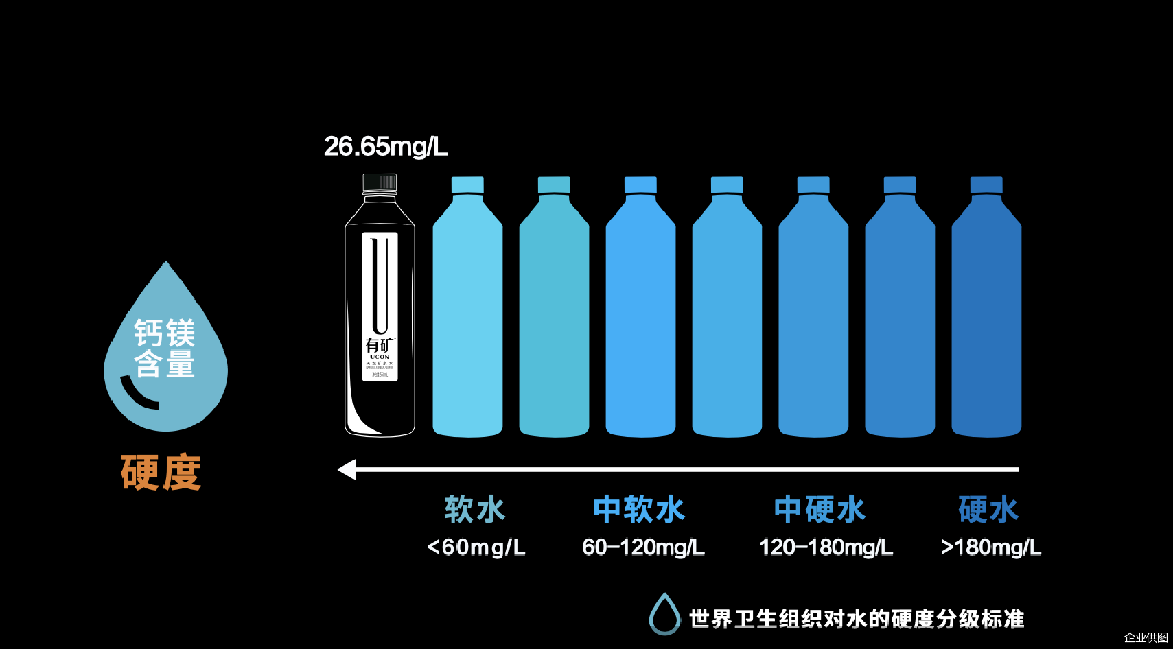 据元气森林有矿团队介绍,有矿产品在国标基础上,加入世界卫生组织WHO《饮用水水质准则》中的软水标准(总硬度≤100),保证有矿矿泉水入口柔软,甘甜丝滑,符合“软矿泉水”定义。而WHO公布的硬水与软水的基准也主要以碳酸钙含量为标准,与是否矿泉水并无因果关系。