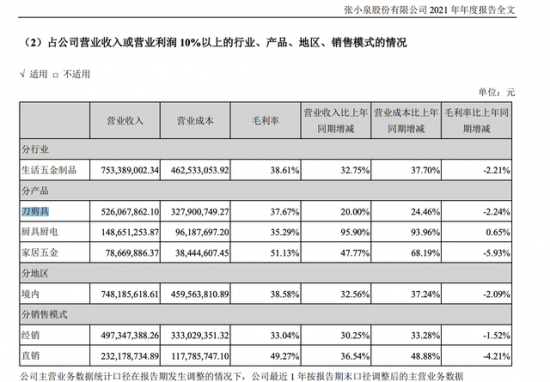 老字号张小泉2021营收7.6亿,刀剪增速放缓,新业务厨电类大增95%
