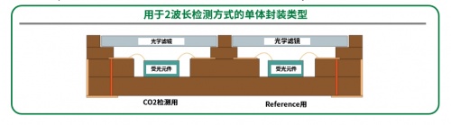 NDIR型气体传感器需要搭载一组发射红外线的“发光元件”和接收红外线的“受光元件”。