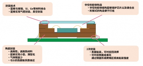 陶瓷封装除了可以实现小型化・薄型化,在高温环境下气体释放少的特点外,还具有高耐热性、高刚性、接近Si的热膨胀系数,有助于实现高可靠性。