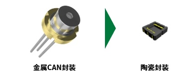 发光元件大多使用LED和MEMS微型加热器,可以通过将金属CAN封装替换为陶瓷封装,实现无引线(pin)的表面贴装,从而实现小型・薄型化。