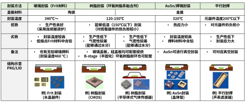 使用陶瓷封装时的封装选择、封装方式及种类如下。