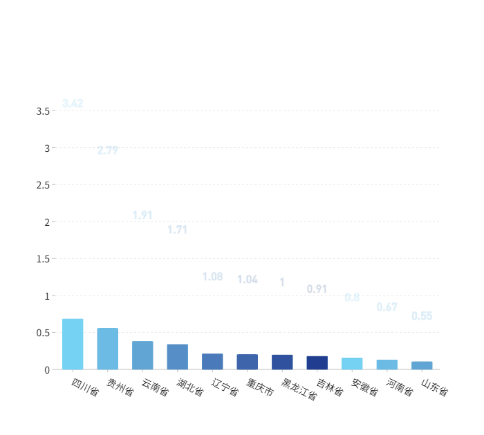 令人出乎意料的是,重庆以1.04万家白酒相关企业排名第二,毕节和成都的相关企业超五千家,曲靖、南充、恩施、昭通的白酒相关企业均在三千家左右。