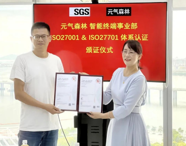 近日,元气森林(北京)食品科技集团有限公司下属的智能终端事业部,获得由SGS通标标准技术服务有限公司颁发的ISO/IEC 27001信息安全管理体系和ISO/IEC 27701隐私安全管理体系认证证书。