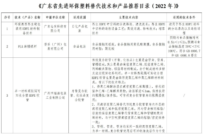 广东省先进环保塑料替代技术和产品 推荐目录(2022年)公示