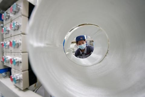 在河北冀中新材料有限公司,工人在玻璃纤维生产车间内工作。新华社记者牟宇摄