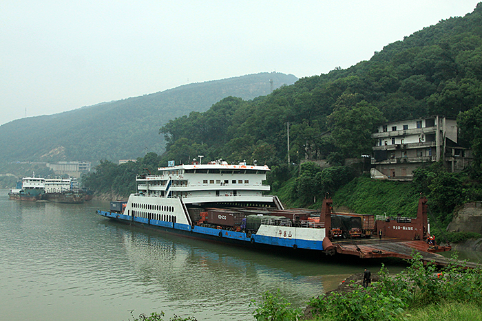 长江上白酒槽罐车滚转运输船首航成功