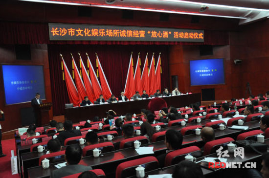 长沙市文化娱乐场所“放心酒”活动正式启动。红网长沙11月19日讯(记者 汤红辉)今日,由长沙市文化娱乐演艺行业协会主办的“阳光娱乐诚信经营”——长沙市文化娱乐场所“放心酒”活动正式启动,长沙市内十多家大型文娱场所、酒类供应商负责人集合东方红广场,举行行业自律宣誓:“诚信经营,确保质量安全,维护消费者合法权益”。