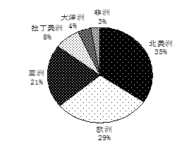 图1:2014年一季度训练健身器材出口世界各大洲分布情况