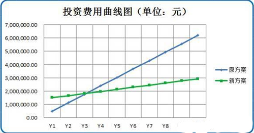 图:某方案投资费用曲线。如果从全寿命周期来综合考虑初始投资和运营成本,贵还是不贵,往往会呈现出另一种景象。