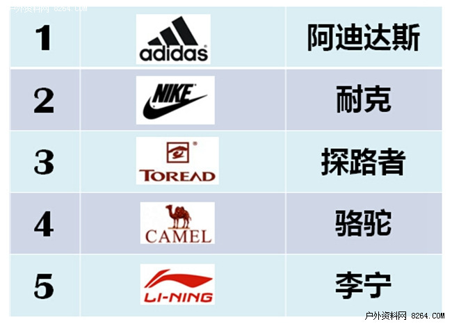 还有一个有意思的现象,最近两年,这三个入榜体育品牌都推出了自己的户外产品。阿迪达斯与耐克是以户外系列产品切入市场,而且不约而同的将跑步作为主攻方向,从自己最擅长的项目入手,扬长避短,并且快速在一二线城市布局。李宁则创建自有品牌Li-Ning Adventure,产品线以鞋服为主,从冲锋衣、羽绒服到登山鞋、溯溪鞋,一应俱全。在2013年,阿迪达斯和李宁都首次在ISPO展会亮相,大规模展示其专业户外产品系列。