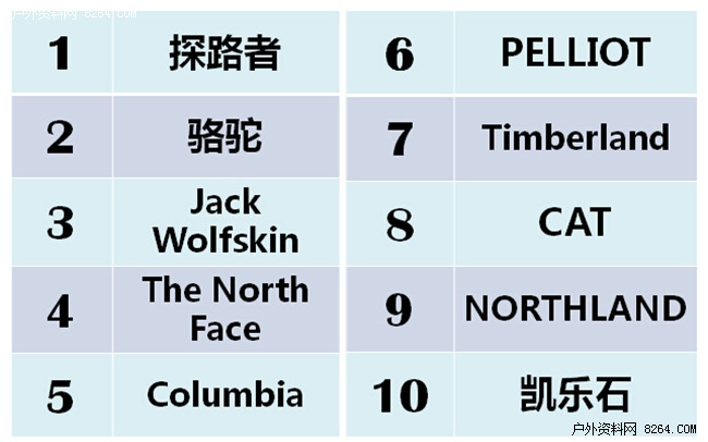 在这个排行榜中,关键词语与专业户外密切相关,探路者、JACK WOLFSKIN、The North Face都是都是传统的户外品牌,而骆驼占据了两个席位,除了多年来积累的市场人气,不得不说也与这两年向专业户外的改变有关,从广告、赞助、到产品研发都在向专业化靠拢。虽然一向有驴友对骆驼的产品存有疑虑,但是从行业角度来讲,我们应该乐于看到品牌的转变。对于国产品牌,更多的宽容,能给他们更多成长的空间。