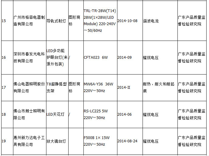 粤31批次灯具抽查不合格 中山企业频“中枪”