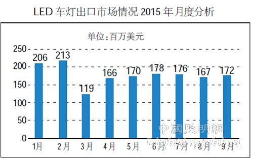 根据数据统计,2015 年1-9 月,中国出口LED 汽车照明灯具共计金额15.68 亿美元,排名靠前的出口厂商主要有:日产中国、江苏摩比斯汽车零配件、本田汽车、小糸车灯等。国内靠前的企业有:广州佛达信号、广东威捷极光汽车灯具有限公司、广州汗马电子科技有限公司。佛山市南海区排名靠前的企业有:佛山市善为汽车电器有限公司、佛山市塔孚汽车照明有限公司、广东雪莱特光电科技股份有限公司等。
