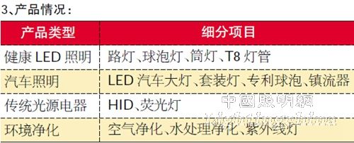 5、竞争力分析: 优势:1、持续专注HID 和车灯应用,品牌经营模式,在国外和国内市场品牌形象正面;2、拥有较强的技术研发能力,在照明行业以技术见长,快速切入LED汽车灯和LED环境净化产品;3、在国内拥有较全面的渠道和经销网络,在电商领域持续投入,业绩飞速增长。