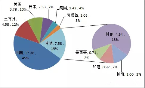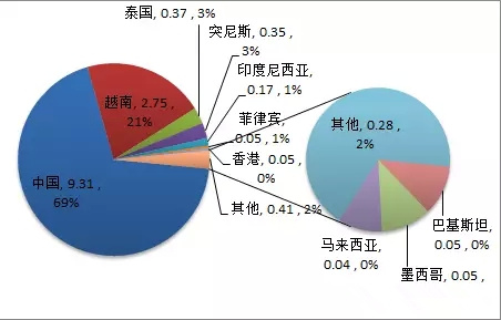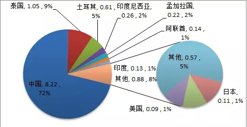 欧盟进口陶瓷来源分布(单位:亿美元)
