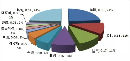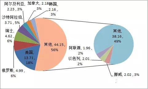 欧盟陶瓷出口市场分布情况(单位:亿美元)