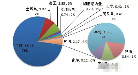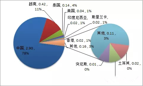 欧盟进口日用陶瓷金额来源分布(单位:亿美元)