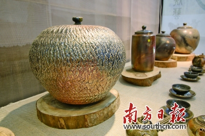 对于新柴烧在台湾产生的背景,吴金维在南方日报记者面前,则给予了更为准确地解释。据其介绍,新柴烧是台湾陶艺工作者在参考了龙窑、蛇窑、凤凰窑等各种窑体的燃烧效果,综合研制后所创出的新窑体。这种创新烧制方法,融合泥土中微量金属元素的特性,使作品触感温润、色泽多变,展现出深邃的意境。