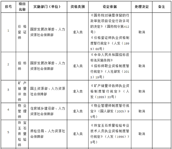 经李克强总理签批,国务院日前印发《关于取消一批职业资格许可和认定事项的决定》(以下简称《决定》),公布取消47项职业资格许可和认定事项。