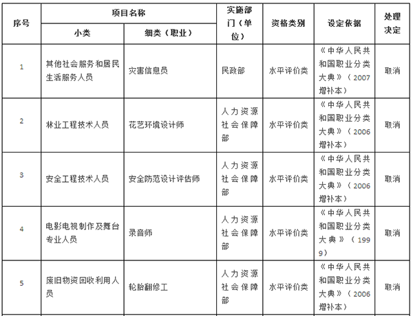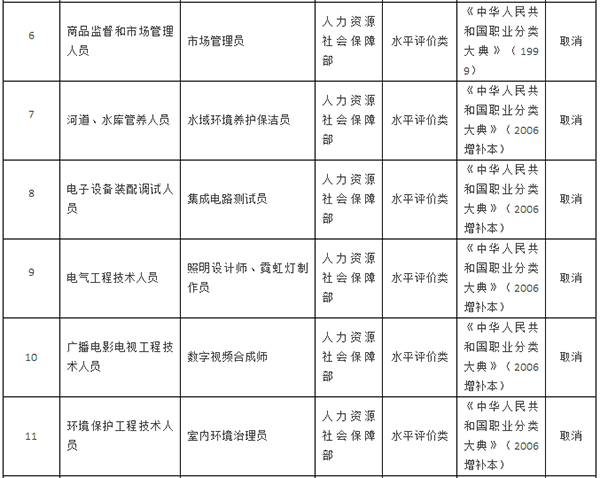 关于取消照明设计师、霓虹灯制作员等职业资格许可和认定
