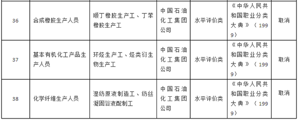 二、取消的技能人员职业资格许可和认定事项(共计38项,均为水平评价类)