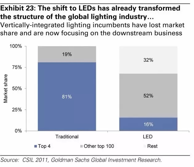 LED的崛起对从事清洁能源行业的人而言不足为奇,但它正静悄悄地颠覆传统垂直整合的照明公司。