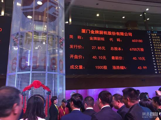 2017第三家橱柜企业上市 金牌厨柜40.1元/股涨停