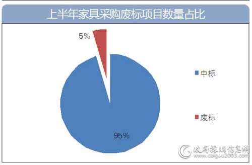 上半年,家具废标项目近110个,约占项目总数的5%。项目废标的主要原因多为参加投标供应商数量不足三家或实质响应招标文件要求的供应商不足三家。废标项目通常采购金额不大,且对投标供应商要求较高。供应商大多关注采购规模较大的项目,如果规模太小就很难引起供应商的关注,加之条件要求苛刻,废标风险会增大。与2016年上半年相比,废标率降低5%,一定程度上体现了家具采购项目在操作与实施的过程中合理性增强,单个项目的成功率高,企业参与热情增加,采购人、代理机构等相关当事人业务水平不断提高,避免了不必要的废标情况。