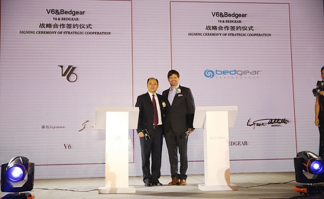 9月1日,慕思旗下时尚品牌V6与美国领先功能性寝具品牌Bedgear在东莞正式举行战略合作签约仪式,标志着慕思全球化和资源整合的脚步又向前迈进了一大步,双方将携手打造时尚功能卧居空间。慕思寝具董事长王炳坤、慕思寝具总裁姚吉庆、Bedgear品牌CEO Eugene Alletto 、Bedgear战略副总裁 Shana Rocheleau 、Bedgear国际销售副总裁Todd Merker、Bedgear亚太地区销售副总裁Ross Stuart、洛可可设计公司总裁李毅超共同出席了出本次签约仪式。