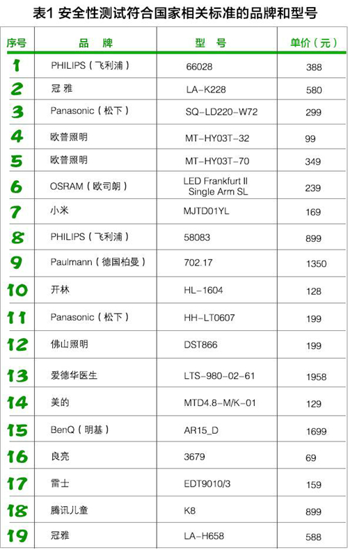 本次比较试验结果显示,在安全性和EMC方面,参与此次比较试验的23批次读写台灯中,有19批次符合国家相关标准(详见表1):