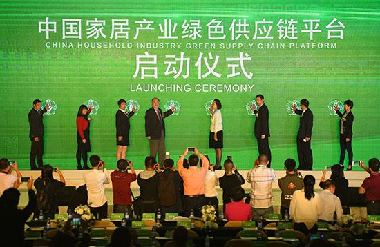 中国林产工业协会副会长兼秘书长石峰、中国家具协会秘书长张冰冰、中国涂料加工工业协会会长孙莲英、中国家用纺织品行业协会市场部副主任郭亮、中国皮革协会主任马瑞华、中国缝制机械协会副理事长杨晓京、中国塑料加工工业协会分会秘书长刘卫东、中国环境保护产业协会办公室副主任莫杏梅等八大协会领导共同出席了“中国家居产业绿色供应链平台”启动仪式。