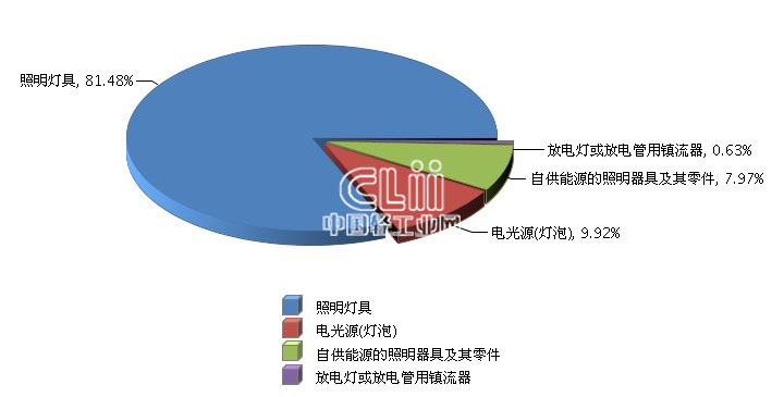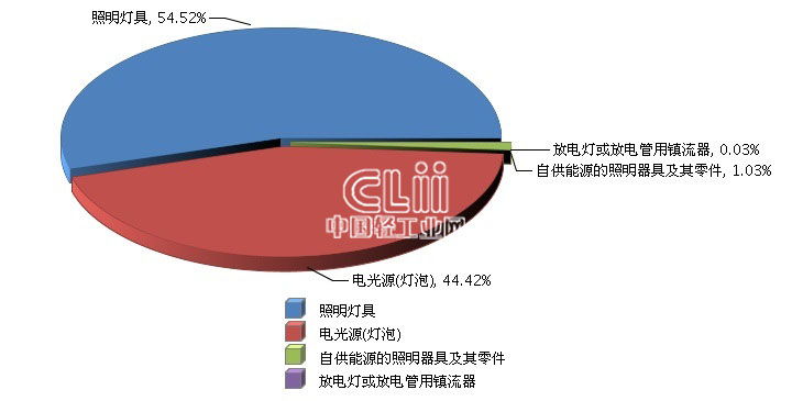 2014年1~3月照明行业累计出口额商品结构分布情况
