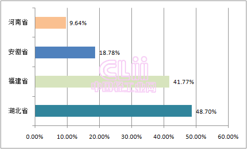 从地区情况看,浙江、江苏和福建排在荧光灯产量的前三位。分别占到了全国累计产量的24.73%、20.98%和17.22%。从增速情况看,湖北增速为48.7%,居全国第一位。