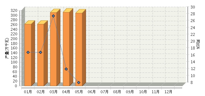根据国家统计局公布数据,2014年1~5月,全国太阳能电池行业累计完成产量1,522.26万千瓦,同比增长23.14%。其中5月份完成产量309.36万千瓦,同比增长8.94%。2014年全国太阳能电池行业月度产量及同比如下图所示。