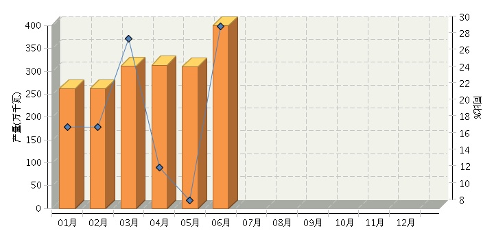 根据国家统计局公布数据,全国太阳能电池行业累计完成产量2,240.30万千瓦,同比增长26.29%。其中:6月份完成产量399.18万千瓦,同比增长29.89%。2014年全国太阳能电池行业月度产量及同比如下图所示。