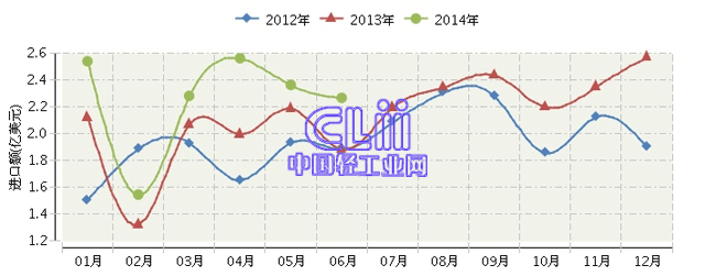 全国家具行业连续三年月度进口额对比