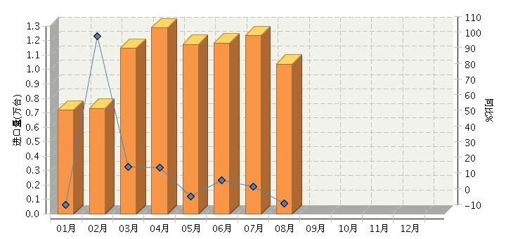 下图: 2014年1-8月全国钢琴行业月度进口量及同比
