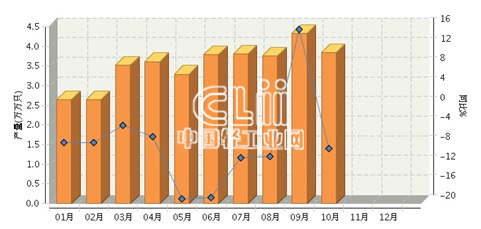 中国轻工业经济运行及预测预警系统显示,2014年1~10月,全国荧光灯行业累计产量35.04亿只,同比增长-8.52%。其中: 10月份完成产量3.83万万只,同比增长-8.87%。