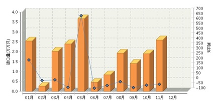 2014年1月~11月,全国白炽灯泡行业累计完成进口量20.03万万只,同比增长-17.21%。