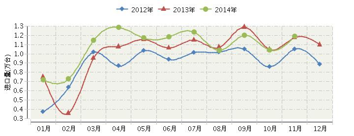 上图: 2012年至2014年11月份钢琴进口量月度走势