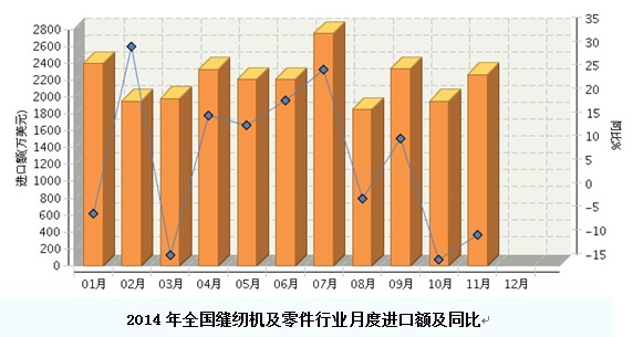 2014年11月全国缝纫机及零件行业进口额月度走势