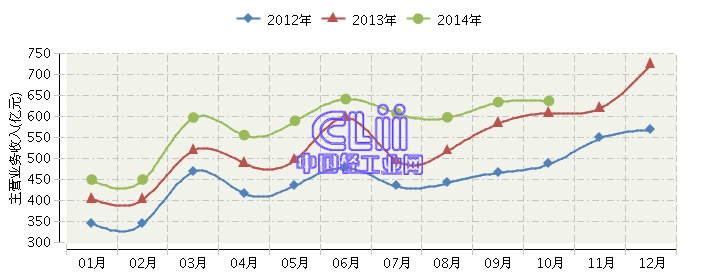 2014年1~10月全国家具行业主营业务收入累计同比增长11.55%