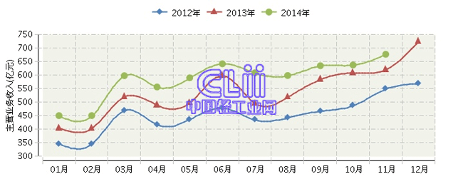 根据国家统计局公布数据:2014年1~11月,全国家具行业累计完成主营业务收入6434.90亿元,同比增长11.37%。其中:11月份主营业务收入同比增长9.79%。